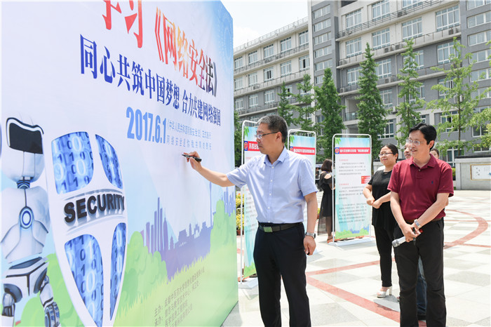 6月7日,学校信息化建设领导小组主办,学校信息与教育技术中心、保卫处、医学信息工程学院承办的“《网络安全法》宣传周”活动启动仪式在李斯炽广场举行。校长、信息化建设领导小组组长余曙光,相关部门学院负责人及部分师生代表参加启动仪式。余曙光宣布“《网络安全法》宣传周”活动正式开始并带领师生代表签名承诺安全用网。