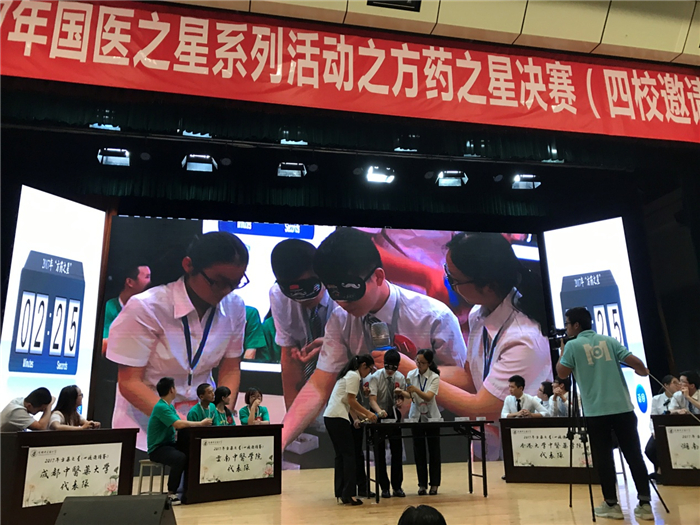 5月26日,由伟德主办,湖南中医药大学、云南中医学院、香港大学和伟德源自英国1946四校参赛,成都寇小儿中医医院协办的2017年方药之星决赛在百会堂举行。学校副校长刘旭光出席活动,教务处处长王飞、副处长周仕轶,基础医学院党委书记刘军、临床医学院党委副书记田理、针灸推拿学院党委副书记杜娟和来自各参赛院校的带队老师参加活动。王飞致辞。