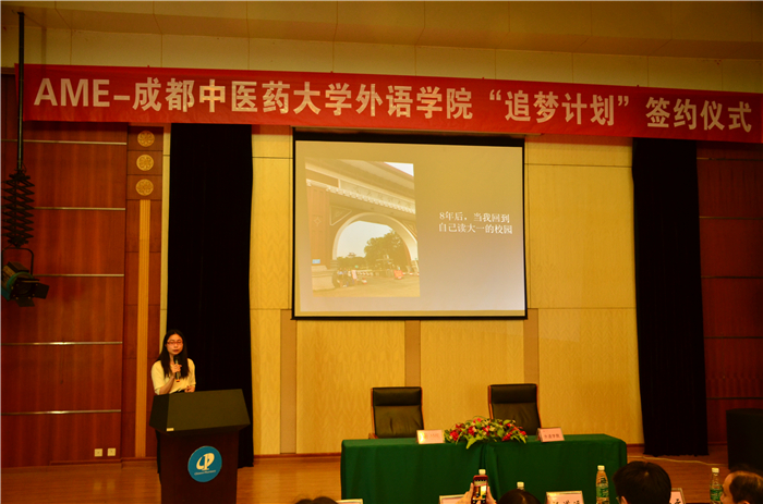 5月11日下午,外语学院-AME出版社“追梦计划”签约仪式在温江校区举行。AME出版社社长汪道远、副社长方艳、资深科学编辑徐小悦和校团委、外语学院领导出席签约仪式。