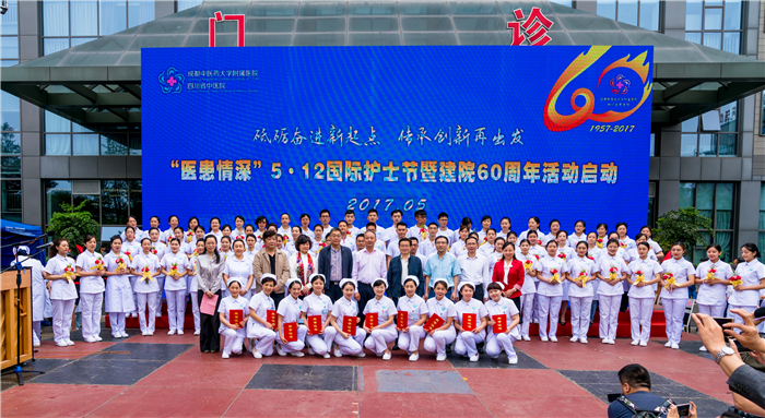 砥砺奋进一甲子,春华秋实六十载。5月11日,附属医院“医患情深”5·12国际护士节暨建院60周年活动启动仪式在门诊大厅与中医文化广场拉开帷幕。四川省中医药管理局党组书记、局长田兴军,中国科学院院士、四川省科协名誉主席、院士刘宝珺,学校党委书记刘毅、校长余曙光,第三届国医大师廖品正,首届全国名中医陈绍宏,四川省第一届、第二届十大名中医曹吉勋、艾儒棣、熊大经、胡天成等专家及医院老领导罗才贵出席仪式。四川省护理学会、四川省中医药学会护理专委会相关领导、专家和院领导参加仪式。仪式由院党委书记杨静主持。