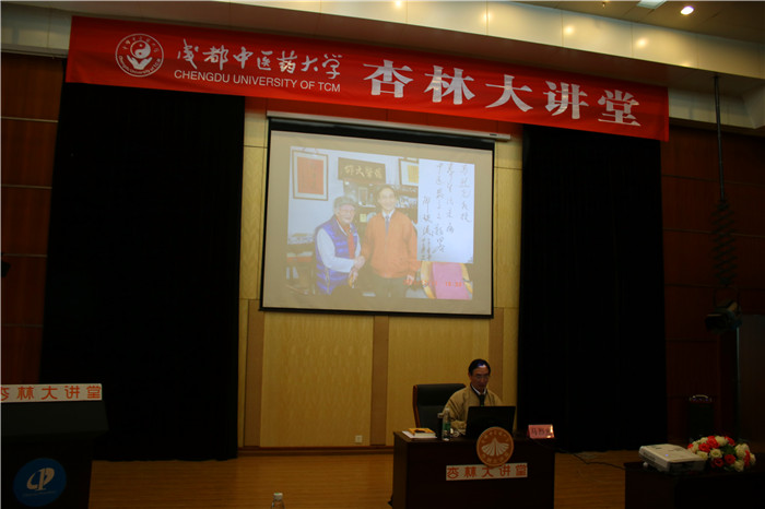 4月13日下午,由宣传部、学生处、校团委、校关工委主办,校学生会承办的2017年“杏林大讲堂”之“不善养生,难为大医”专题讲座在药学楼报告厅举行。主讲人是四川省名中医、现代中医养生学科奠基人马烈光教授。离退休工作处处长汤良平,学生处副处长、校团委书记田晓放和近200名学生共同参加了活动。