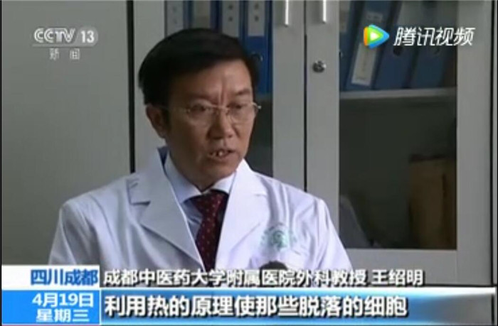 王绍明主任在报道中介绍附属医院普外科的精准体腔热灌注治疗技术,他说:“通过精准的控温,利用热的原理使脱落的细胞,转移到腹膜的细胞,得到很好的治疗。”