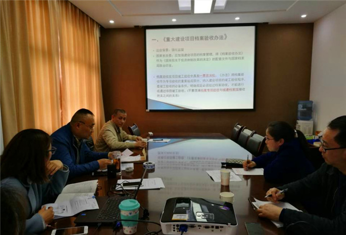 档案馆馆长陈先强详细介绍了目前国家关于重大建设项目档案的相关规定,并对下一步如何做好建设项目档案工作进行了汇报。