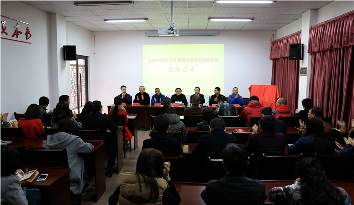 沈涛在基地挂牌仪式上发表讲话,代表学校感谢邛崃市各级政府对学校事业发展的大力支持。他简要回顾80年前中国共产党领导红军主力部队胜利完成震撼世界、彪炳史册的长征并指出,红军长征邛崃纪念馆是难得的师生思想政治教育基地,在增强师生思想政治教育工作针对性、实效性和吸引力、感染力上具有重要作用。学校与纪念馆共建思想政治教育基地,是深入贯彻落实《中共中央国务院关于进一步加强和改进大学生思想政治教育工作的意见》等文件精神、深化师生思想政治教育工作的重要举措,也是学校纪念红军长征胜利80周年、弘扬伟大长征精神、推进“两学一做”学习教育、加强师生爱国主义教育的重要活动。我们要充分依托基地,让世世代代成中医人学习革命前辈英勇事迹,培育和践行社会主义核心价值观,坚定中国特色社会主义道路自信、理论自信、制度自信和文化自信,坚定共产主义远大理想;牢记伟大长征精神,使之成为推进一流中医药大学、一流学科“双一流”建设,推进全面深化改革、全面依法治校、全面从严治党、全面实现腾飞的强大精神动力;教育师生发愤图强、奋发有为,继续把革命前辈开创的伟大事业推向前进,为实现“两个一百年”奋斗目标、实现中华民族伟大复兴中国梦四川篇章贡献成中医力量。