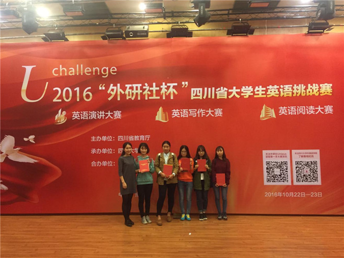 10月23日,2016“外研社杯”四川省大学生英语挑战赛在四川大学望江校区举行。大赛由四川省教育厅主办,四川大学、外语教学与研究出版社承办,包含英语演讲大赛、英语写作大赛和英语阅读大赛三项赛事,共有40所川内高校100多人参赛。伟德外语学院学生曹圆梦、钟燕梅、李琴莹,护理学院学生杨倩瑜,第二临床医学院学生杨梦颖在外语学院教师孟悦的带领下参加比赛,分别获得英语演讲比赛三等奖一项,英语写作、阅读比赛三等奖各两项的好成绩。