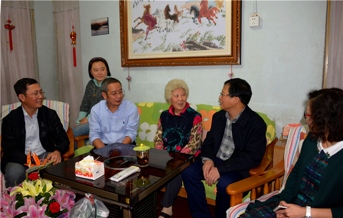 10月19日下午,在六十周年校庆来临之际,副校长彭成率离退休工作处处长汤良平、药学院院长傅超美等,登门看望了伟德中药学奠基人凌一揆教授的家属李仕素老师。彭成对李老师的身体情况和生活状况进行了仔细的询问,回忆和赞扬了凌老对学校以及中医药事业作出的巨大贡献,也介绍了学校60年校庆的相关庆祝活动。他特别介绍10月25日下午即将举行的凌一揆学术思想传承与创新会,将由凌老的优秀弟子对凌老的学术思想进行深入阐述和发扬,另将有优秀的研究生及凌一揆基地班本科生上台汇报学习科研成果。大家表示,一定要在老领导打下的良好基础上推进学校的再次腾飞,创造新的发展业绩,不辜负老领导的殷切希望。彭成还对同行人员说,学校、学院要千方百计尽力照顾好老同志,为他们做好事、办实事、解难事。李老师也对学校和学院领导对她的关怀和关心表达了由衷的感谢。