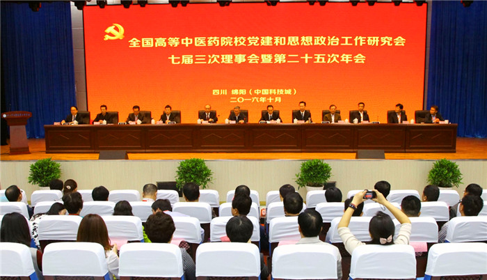 10月19日,全国高等中医药院校党建和思想政治工作研究会七届三次理事会暨第二十五次年会在四川省绵阳市四川中医药高等专科学校召开,来自全国25个省、市、自治区的28所中医药院校、中医院系、民族医药学院、高职高专院校的党委书记和获奖论文作者近百人参加大会,学校党委书记马跃荣出席大会并做会议交流发言。大会全面贯彻党的十八大和十八届三中、四中、五中全会精神与习近平总书记系列重要讲话精神,围绕树立五大发展理念,落实全面从严治党要求,以“两学一做”学习教育为契机,积极探索高等中医药院校党建和思想政治工作规律,推动中医药院校基层党组织科学化管理体系建设。