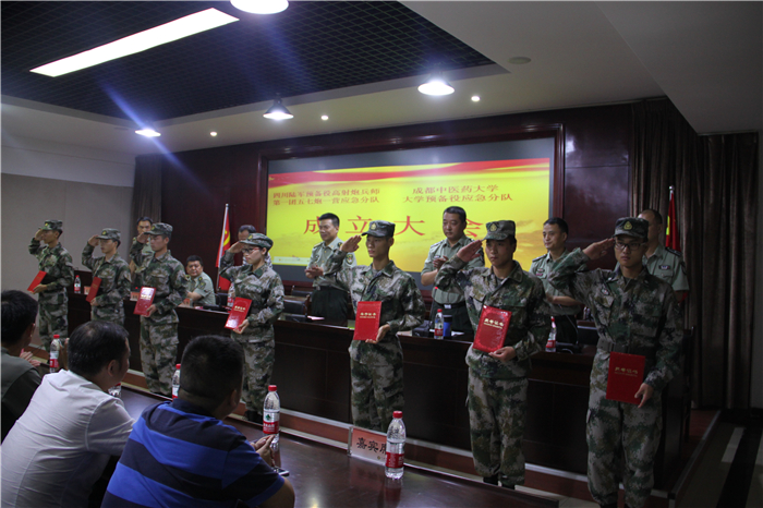 吴晓林宣布应急分队成立并向应急分队授牌。与会领导向预任士兵代表授衔。预任士兵在四川陆军预备役高射炮兵师第一团57炮一营营长戴宏强带领下进行入队宣誓。会议对前期训练、集结点验活动中表现突出的14名预任士兵进行表彰。
