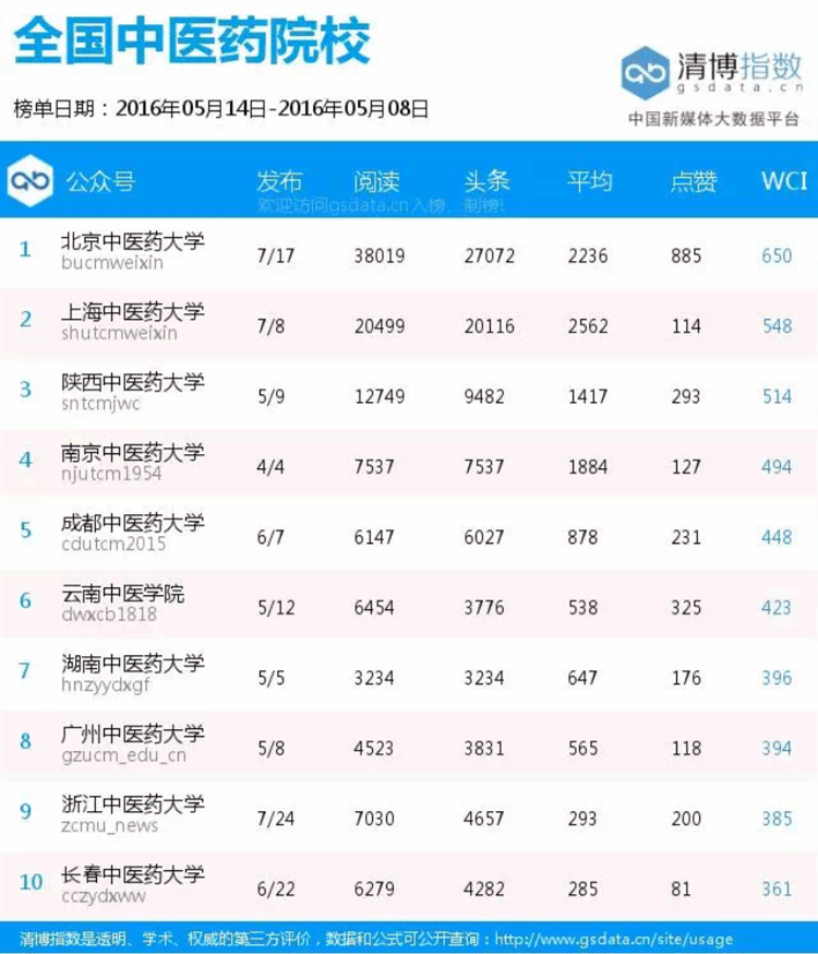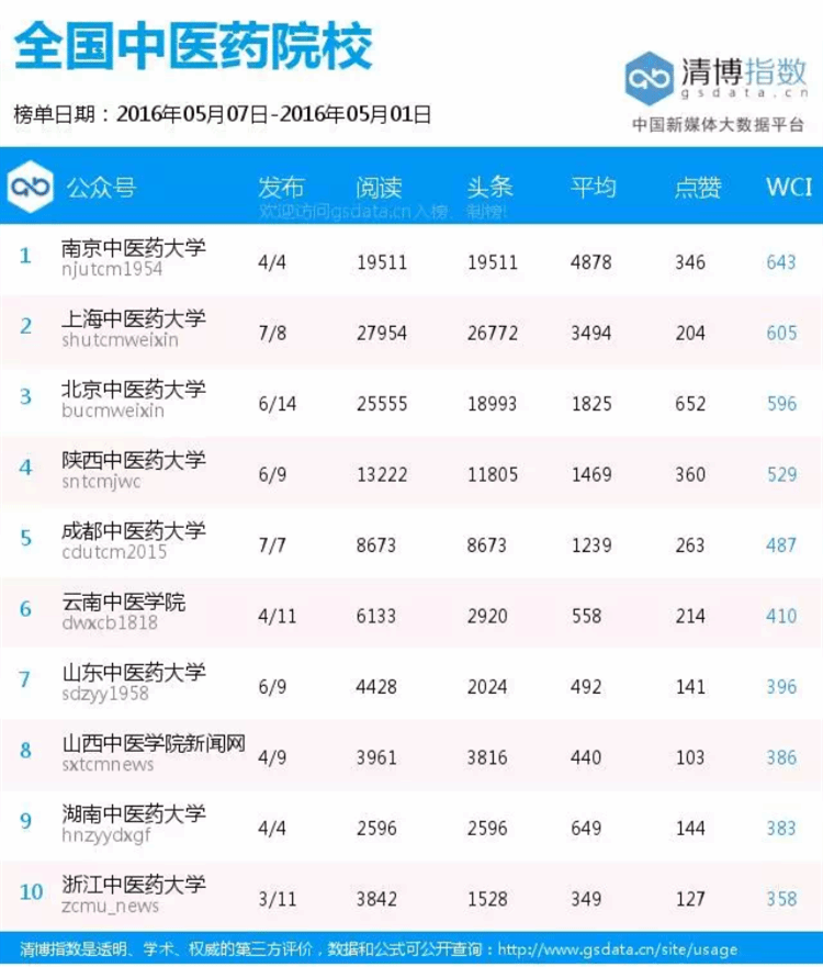 学校官方微信在全国中医药院校周榜中位居前五名(5.1—5.14) 发布时间:2016-05-18 09:47:00 浏览次数: 次 【字体:小 大】 (编辑/任翔) 【打印正文】 上一条:药学院党委举行“两学一做”学习教育示范党课 下一条:学校官方微信在全国中医药院校周榜中位居前五名(5.1—5.14)