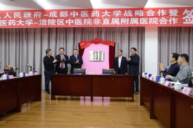 梁繁荣一行考察了太极医药城和涪陵区中医院新址。梁繁荣代表学校与涪陵区区长李洪义签订校地战略合作协议,与涪陵区中医院院长李滨签订非直属附属医院建设合同书。根据协议,涪陵区作为学校科研课题实验基地,学校派遣专家指导涪陵中医药科研机构和医疗卫生机构承担国家、省(市)级重点研究课题,双方协力共创中医药科技创新平台、共同促进科技成果转化,大力加强人才培养,全面提升中医医院医疗技术水平,推动涪陵区中医药卫生事业发展。