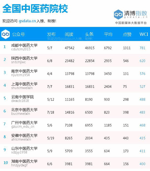 学校官方微信在全国中医药院校微信影响力周榜中位居首位(4.17-4.23) 发布时间:2016-04-28 13:49:00 浏览次数: 次 【字体:小 大】 由学校官方微信公众号推送的《成中医版南山南|把六十载光辉岁月唱给你听》秒杀其他高校文章,以4万多的阅读量傲视了中医药院校微信圈。 (编辑/任翔) 【打印正文】 上一条:学校召开“两学一做”学习教育工作座谈会 下一条:学校官方微信在全国中医药院校微信影响力周榜中位居首位(4.17-4.23)