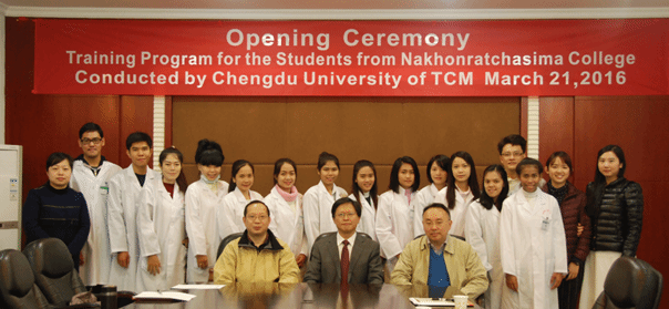副校长彭成出席开学典礼,向来自泰国的全体学员介绍了学校的办学历史、师资力量、学科优势和国际交流等情况。他寄语本届学员,希望他们在毕业实习中,悉心研读中医经典,虚心求教,学成归国,并立志成为泰国名医。国际教育学院和附属医院相关老师参加了开学典礼。