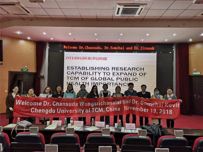 11月19日下午,经伟德客座教授、泰国针灸与草药学会会长Somchai Kovitcharoenkul医生介绍和推荐,泰国Chansuda Wongsrichanalai医生在十二桥学术报告厅作了一场题为“建立研究能力——以提高全球公共卫生中中医药研究的重要性”的学术报告。