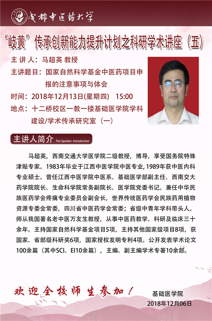“岐黄”传承创新能力提升计划之马超英教授讲座 发布时间:2018-12-10 10:12:00 浏览次数: 次 【字体:小 大】 【打印正文】 上一条:段俊国教授作国家自然科学基金申报培训讲座 下一条:伟德源自英国19462019年国家自然科学基金申报培训科学思路与方法培训