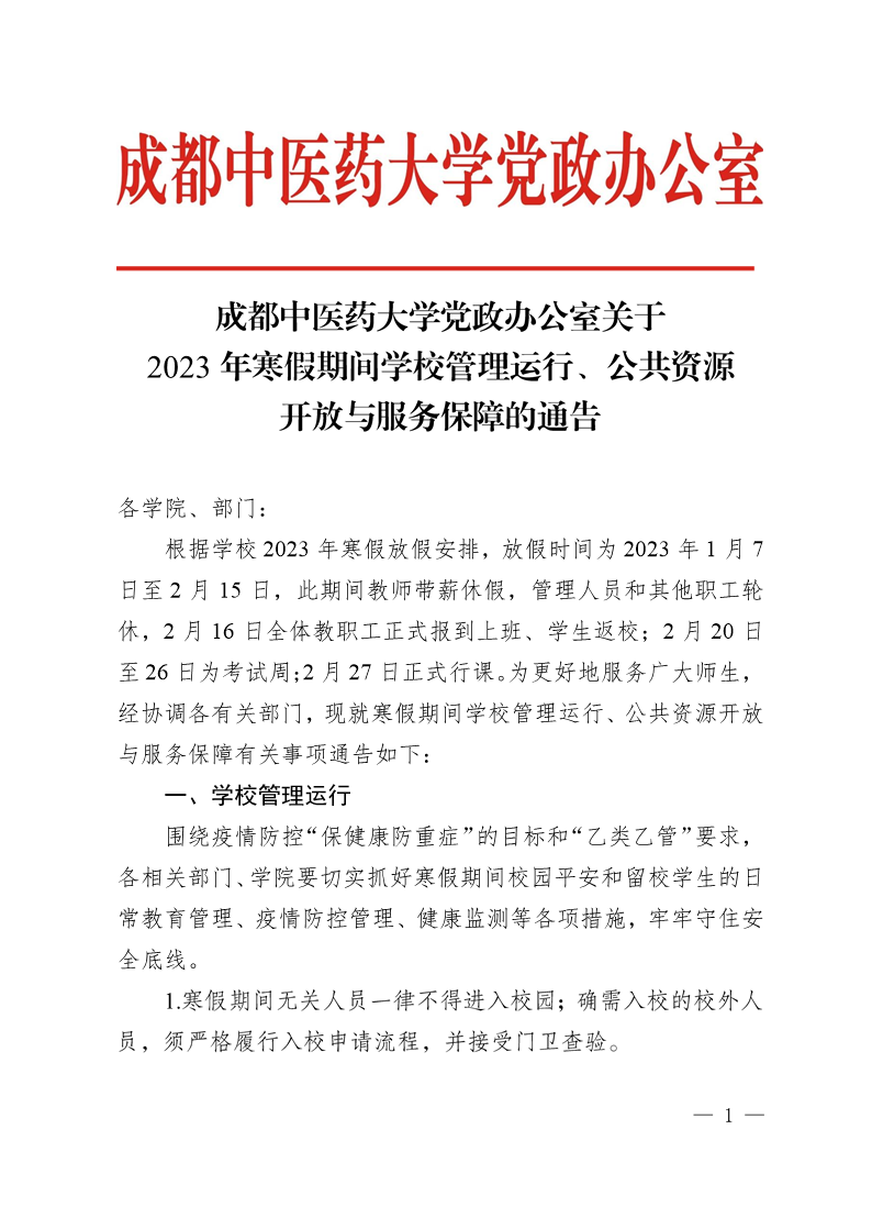 伟德源自英国1946党政办公室关于2023年寒假期间学校管理运行、公共资源开放与服务保障的通告 发布时间:2023-01-09 21:03:19 浏览次数: 次 【字体:小 大】 【打印正文】 上一条:伟德源自英国1946关于与21家单位开展高等学历继续教育校外教学点合作办学的公示 下一条:伟德源自英国1946第二附属医院信息化软件市场调研公告