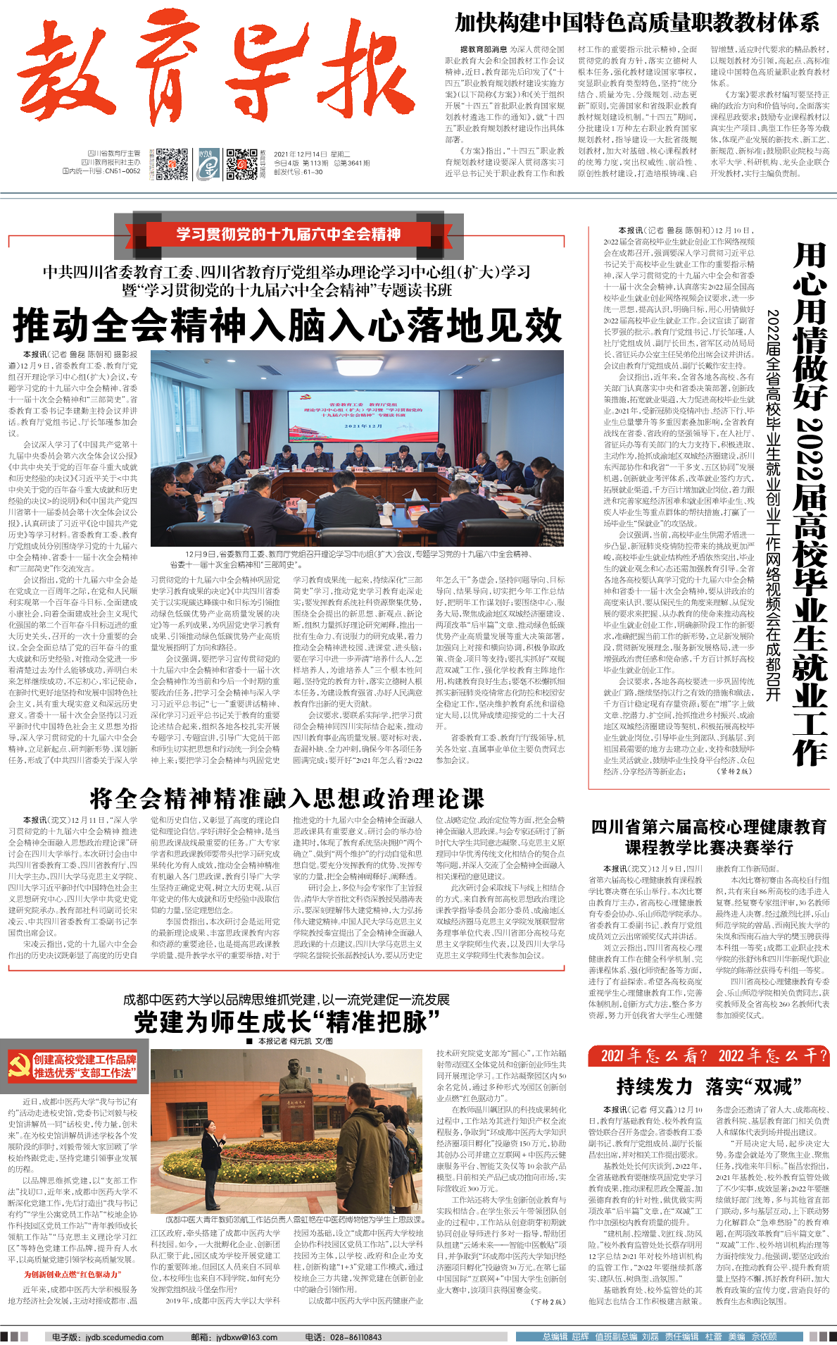 2021年12月14日,《教育导报》头版以《党建为师生成长“精准把脉”》专题报道伟德以品牌思维抓党建,以一流党建促一流发展情况。以下为报道全文: