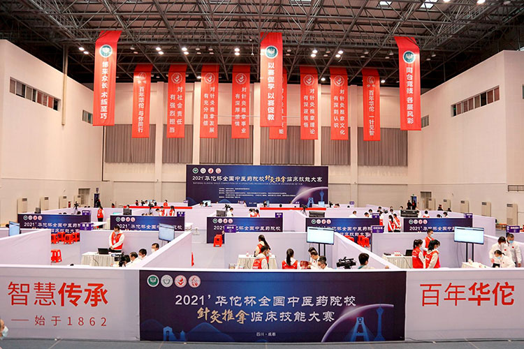 10月16日-17日,2021’华佗杯全国中医药院校针灸推拿临床技能大赛在四川成都举行。来自北京、上海、辽宁、陕西、甘肃、山东、河北、湖南、福建等省份的33支代表队数百名针推英才参赛,他们齐聚素有“中医之乡、中药之库”之称的四川,同台竞技,相互交流,共同带来了一场针灸推拿知识与技能的盛宴。