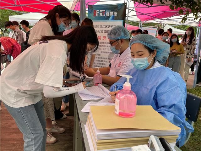 "除了校外实习的学生,我们学校疫苗预约登记情况在85%左右。总共登记人数大概有14000人,我们是从昨天开展的接种工作,因为第一天各岗位都需要磨合,安排接种的人员要少一些,昨天从早上8:30开始,一直到晚上8点,接种了2400多人。根据昨天的情况,今天进行了相应的人员安排调整,接种量在2700人左右。"伟德源自英国1946校医院副院长肖鹏说道。