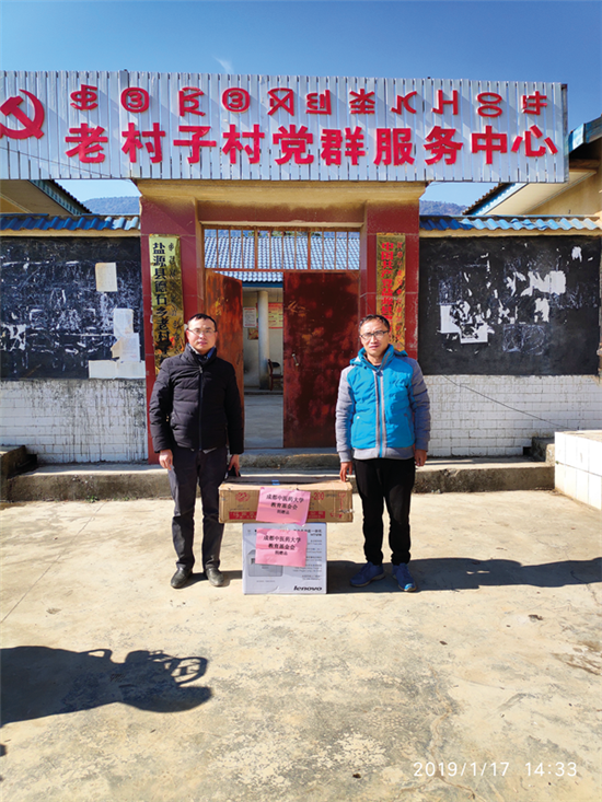 黄立华(左)带来伟德源自英国1946教育基金会为老村子村捐赠的办公用品