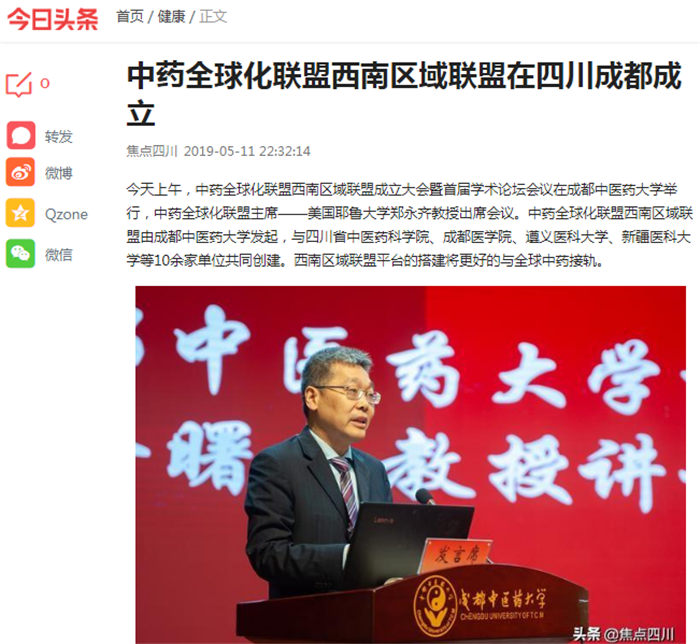 我国西南以及西部地区中药资源丰富,中药研究和产业发展势态良好,但由于深处内陆,国际合作和国际化的进程总体偏弱。今天,中药全球化联盟西南区域联盟的成立将搭建起了一个中药产、学、研合作交流、协同创新的平台,并将进一步整合境内外相关领域的学术资源,加强中药文化传承与技术推广,推动全球中药产业稳步发展。