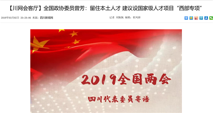 【川网会客厅】全国政协委员曾芳:留住本土人才 建议设国家级人才项目“西部专项”