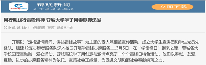 用行动践行雷锋精神 蓉城大学学子用奉献传递爱