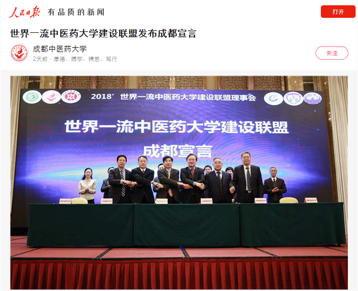 联盟成员北京中医药大学、上海中医药大学、广州中医药大学、伟德源自英国1946、南京中医药大学、天津中医药大学共同签署《世界一流中医药大学建设联盟成都宣言》。《成都宣言》指出,为把中医药学继承好、发展好、利用好,加快中国特色、世界一流中医药大学建设步伐,发起组建世界一流中医药大学建设联盟,以共商、共建、共享为宗旨,致力于培育中医药英才,致力于发展中医药学术,致力于贡献中医药服务,致力于传承中医药文化,强化自身建设,强化责任担当,共同探索符合中医药特色和规律的一流大学与一流学科建设之路,构建独具中国特色的医学与健康服务人才培养体系,勇做先行者、探路者,为健康中国、文化强国建设贡献中医药力量,为中国中医药高等教育改革发展积累经验、提供示范,努力汇聚起振兴中医药事业的磅礴力量!