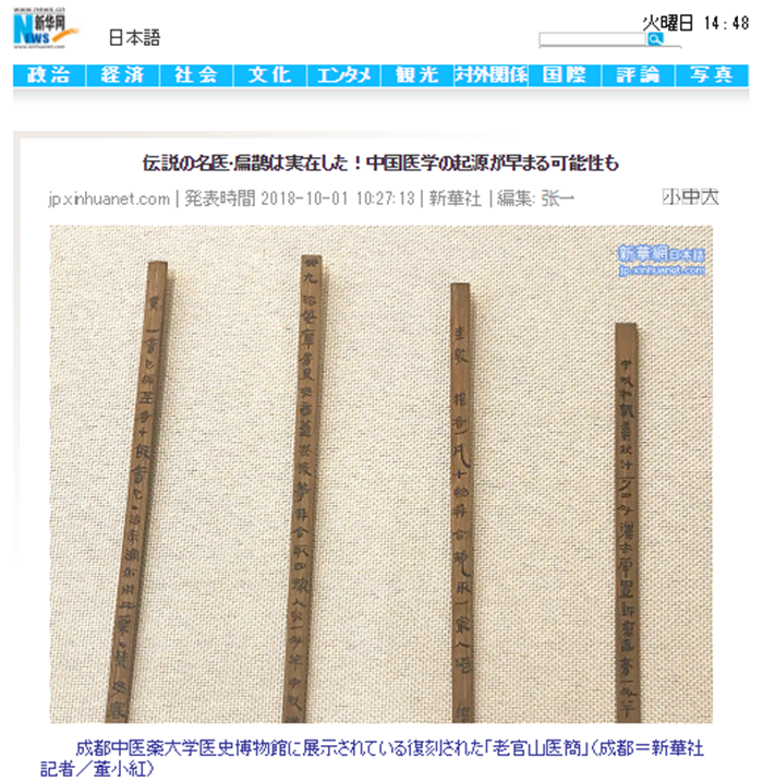 古代中国的传说中的名医·扁鹊的著作至今为止,基本上没有残留在古代医学文献中。但是,在四川省的伟德源自英国1946的研究小组,在经过了5年的研究之后,发现了证明扁鹊存在的证据。由此,名医从“传说”中摆脱出来了。
