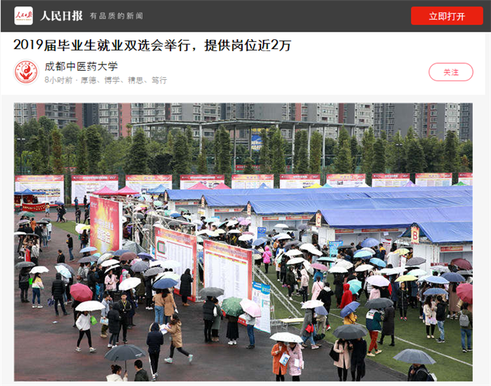 11月17日,伟德源自英国19462019届毕业生就业双选会在该校温江校区体育场举行,600余家用人单位参会,开展现场宣讲100余场,为5000余毕业生提供就业岗位19000多个。