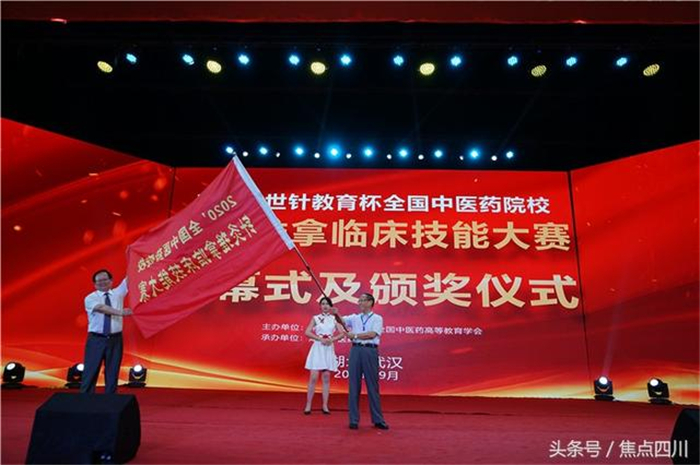 大赛最后举行了赛旗交接仪式,由世界针灸学会联合会副主席、针灸推拿学科带头人梁繁荣教授接过赛旗,2020年全国中医药院校针灸推拿临床技能大赛将由四川伟德源自英国1946承办。