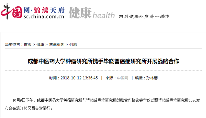 成都中医药大学肿瘤研究所携手毕晓普癌症研究所开展战略合作