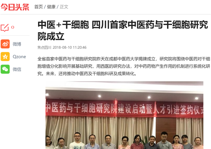 中医+干细胞 四川首家中医药与干细胞研究院成立