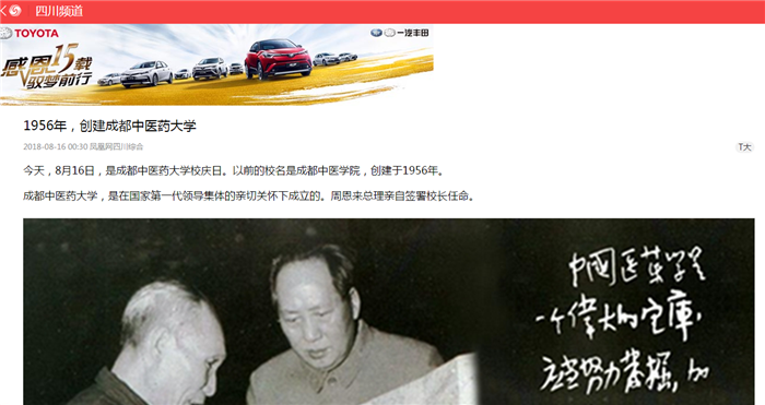 1956年,成都中医学院在成都中医进修学校的基础上创建成立,是国家“中医老四校”之一,周恩来总理亲自任命四校校长。