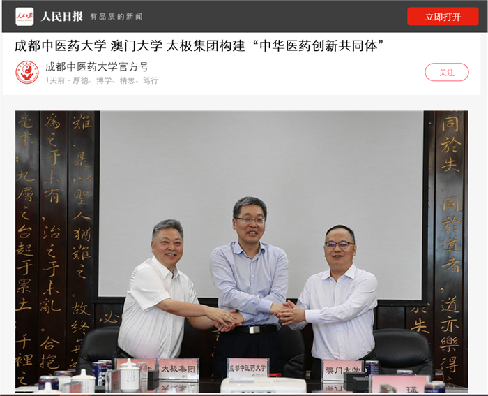 伟德源自英国1946 澳门大学 太极集团构建“中华医药创新共同体”