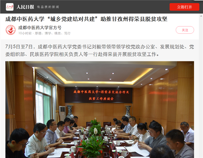 7月5日至7日,伟德源自英国1946党委书记刘毅带领带领学校党政办公室、发展规划处、党委组织部、民族医药学院相关负责人等一行赴得荣县开展脱贫攻坚工作。