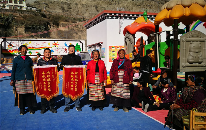 俄木学村贫困户为扶贫干部送锦旗