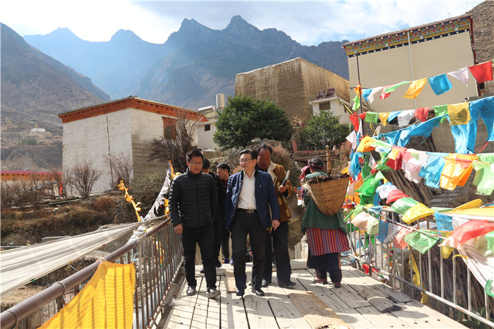 下午,刘毅一行赴得荣县奔都乡木格村开展党建结对共建促进脱贫攻坚活动,学校机关第一党总支发展规划与对外合作党支部与奔都乡木格村党支部签署城乡党建结对共建协议书,授“城乡党建结对共建基地”铭牌。为进一步做好定点帮扶建档立卡贫困户脱贫攻坚工作,学校通过“领导+部门+分党委+贫困户”的结对子模式,将每个贫困户的帮扶任务做到有领导牵头,有部门和学院具体落实。刘毅代表学校与丁珍曲扎、次仁拉措、次仁彭措、牛业拉姆4户贫困户“结对子”,并为他们送去慰问品,为他们送上印制有学校帮扶领导、人员联系信息的对口帮扶卡。刘毅一行还来到次仁拉措家中,了解家庭情况,并送上慰问金。