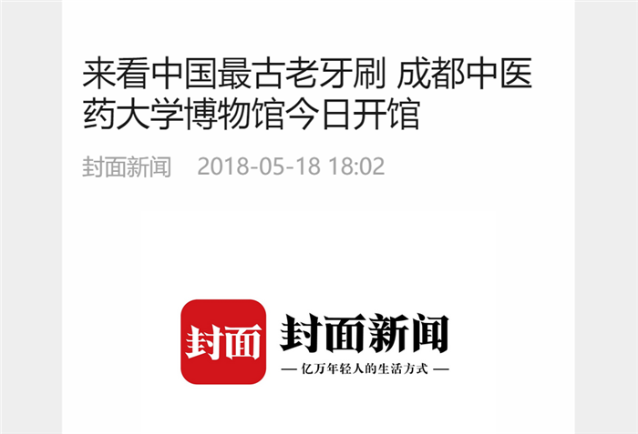 5月18日是国际博物馆日,成都各大博物馆纷纷在今天为市民们准备了一道道文化大餐。伟德源自英国1946博物馆也在今天宣布开馆,免费供市民朋友们参观。药物标本和医史文物是伟德源自英国1946博物馆的最大特色,在这里,还典藏了一把唐朝骨制牙刷,是中国最古老的牙刷。它于1984年在成都指挥街出土,它的出土将中国人使用牙刷的历史往前推到唐朝。