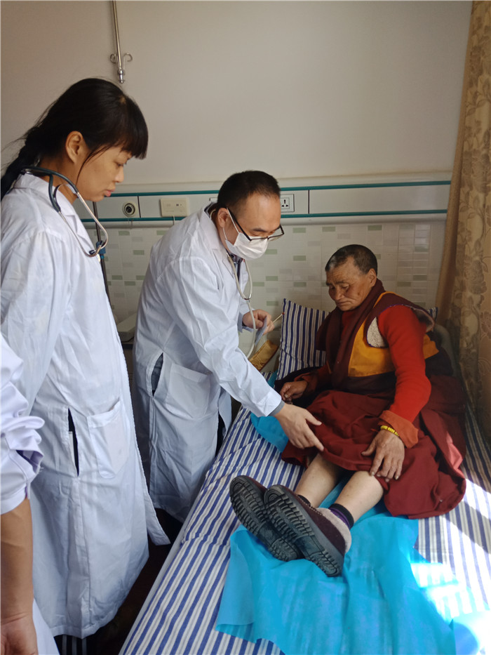 色达县位于甘孜州的东北部,海拔4000米以上,常年严寒,昼夜温差大,高度缺氧,医疗条件较落后。专家们经过一天半的长途跋涉于6月6日下午到达色达县,来不及休整就前往色达县人民医院通过查房、结合具体病例进行临床业务指导。随后,在藏医院开展第一场义诊活动。藏医院人头攒动,挤满了等候义诊的藏民群众,对专家的义诊充满了感激。