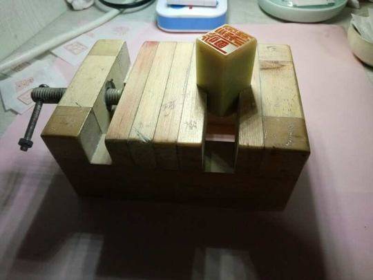 印好之后拿笔描边,之后才能将印章放在印床上开始雕刻。