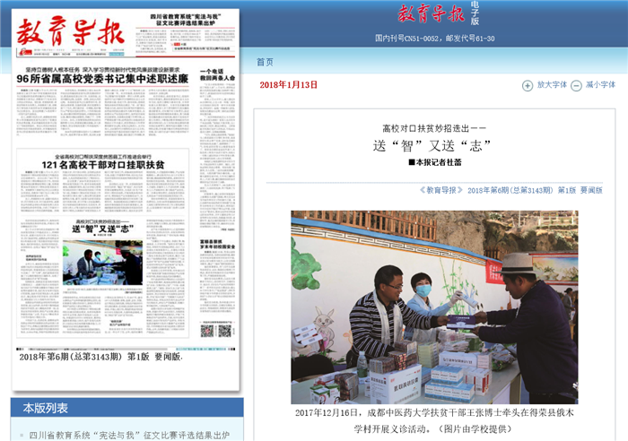 针对帮扶区县学校师资紧缺的情况,四川师范大学组织高年级本科学生赴对口帮扶区县顶岗实习,仅2017年,就有137人次到理塘、普格、盐源、会东、仪陇、达川等县区顶岗支教。学校还开展农村中学生励志教育,在贫困区县组织多场专家讲座,开展心理引导,帮助即将高考的农村中学生克服自卑、失落和焦虑情绪,实现了既扶“智”又扶“志”的目的。“秘密武器”助力产业转型升级