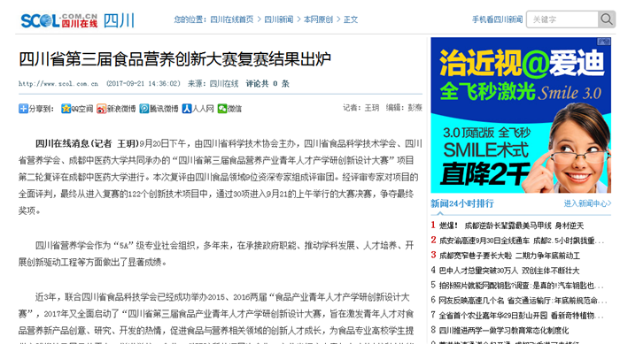 近3年,联合四川省食品科技学会已经成功举办2015、2016两届“食品产业青年人才产学研创新设计大赛”,2017年又全面启动了“四川省第三届食品产业青年人才产学研创新设计大赛,旨在激发青年人才对食品营养新产品创意、研究、开发的热情,促进食品与营养相关领域的创新人才成长,为食品专业高校学生提供实践锻炼及展示的平台,增进学校、企业、科研院所的深层次合作,充分发挥广大青年人才的创新创业能力,为企业选拔和提供优秀人才、搭建优秀项目平台,推动四川省食品营养产业的长足发展。