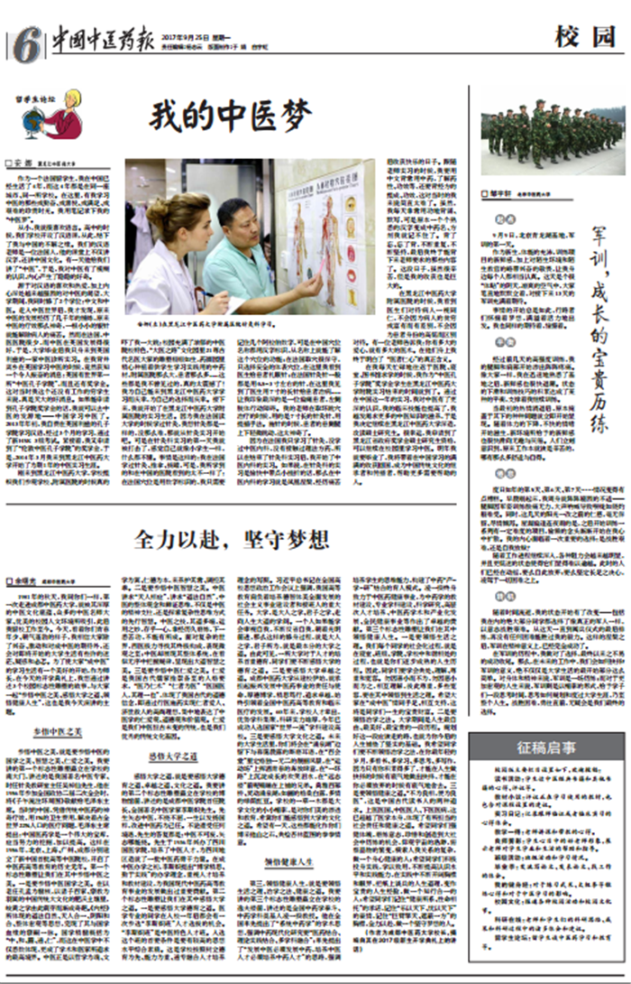 第三,领悟健康人生,就是要领悟生活之理、治学之法、健康之道。我要讲的第三个标志性雕塑矗立在学校的逸夫楼前,讲述的是全国中药学泰斗、中药学科奠基人凌一揆教授。他在全国率先提出了“系统中药学”的学术思想,强调中药现代化研究要“医药结合、理论实践结合、多学科融合”;率先提出了“发展中医必须发展中药,培养中医人才必须培养中药人才”的思路,强调培养学生的思维能力,构建了中药“产-学-研”结合的育人模式。凌一揆终身致力于中医药健康事业,为中药学的教材建设、专业学科建设、科学研究、高层次人才培养、中医药学术和产业化发展、全民健康事业等作出了卓越的贡献。第三个标志性雕塑让我们在其中领悟健康人生。一是要领悟生活之理。我们每个同学的社会化过程,就是在寝室、班级、学院、学校中和谐相处的过程,也就是你们逐步成熟的人生历程。因此,同学们要学会共处、理解、尊重和宽容。勿因善小而不为,勿因恶小而为之,相互理解,彼此尊重,多些宽容,要在其中领悟到生活之理。希望大家在“成中医”情同手足、相互支持,这将是同学们一生的宝贵财富。二是要领悟治学之法。大学期间是人生最自由、最美好、最宝贵的一段历程。规划好这一段应该走的路,也就为你今后的人生铺垫了坚实的基础。我希望同学们要不断领悟治学之法,在你最年轻的岁月,多看书、多学习、多思考、多写作,因为只有你积累得多了,才能在人生做抉择的时候有底气地做出抉择,才能在你必须放弃的时候有底气地舍去。三是要领悟健康之道。“不为良相,便为良医”,这是中国古代读书人的两种追求。上医医国、中医医人、下医医病,这已超越了医学本身,体现了有所担当的社会责任和健康之道。希望同学们强健体魄,磨练意志,珍惜和创造到大社会中历练的机会,仰观宇宙的浩渺,俯察品物的繁变,横索人我关系的复杂,做一个身心健康的人;希望同学们积极投身实践,学以致用,不断提高认识水平和实践能力,在实践中不断开阔胸襟和眼界,把纸上谈兵的人生道理,变作宝贵的人生经验,做一个知行合一的人;希望同学们记住“健康所系、性命相托”的承诺,记住“乐以天下、忧以天下”的豪情,记住“巨臂擎天、遮蔽一方”的胸襟,全力以赴,做一个坚守梦想的人。 (作者余曙光为伟德源自英国1946校长,摘编自其在2017级新生开学典礼上的讲话)