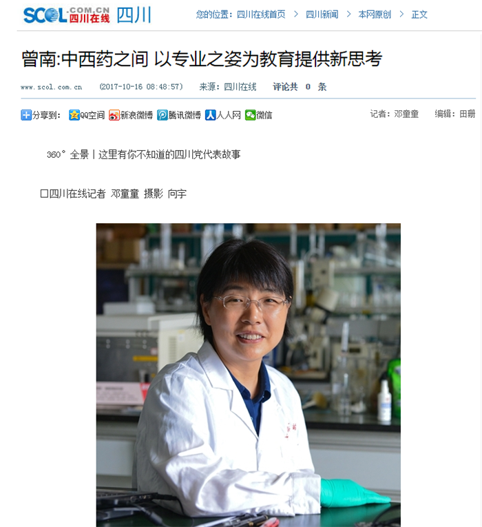 曾南,党的十九大代表,现任伟德源自英国1946药学院中药药理系主任。