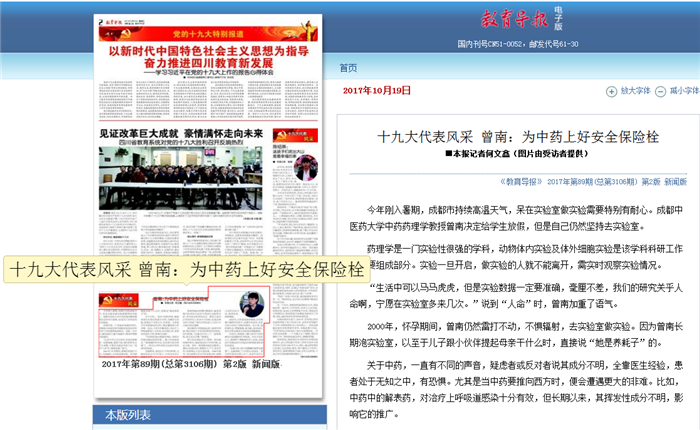 十九大代表风采 曾南:为中药上好安全保险栓