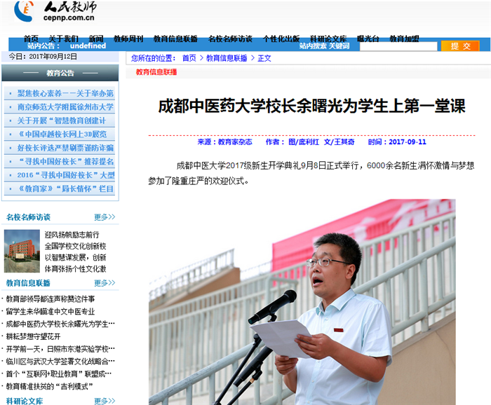 成都中医大学2017级新生开学典礼9月8日正式举行,6000余名新生满怀激情与梦想参加了隆重庄严的欢迎仪式。