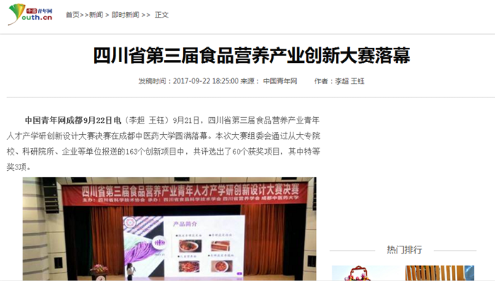 这次大赛在2017年全国“大众创业,万众创新”活动周期间受到广泛关注,较好地促进了四川食品与营养相关领域的创新人才成长,促进产学研成果转化,激发青年人才的创新创业热情,充分展示和发挥广大青年人才的创新创业能力,取得了良好的社会反响。