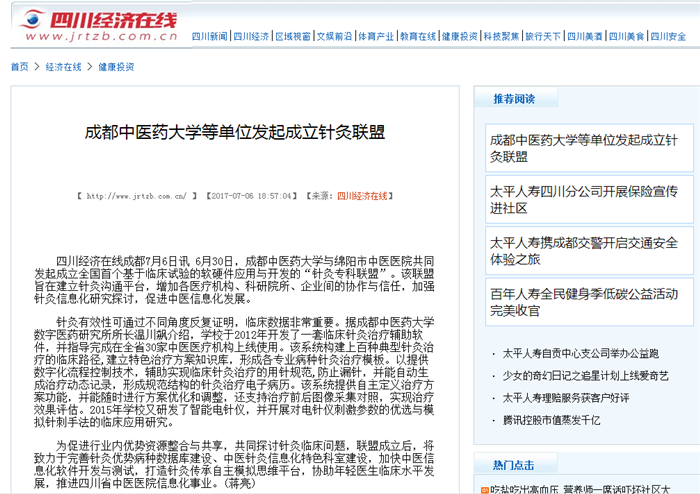 为促进行业内优势资源整合与共享,共同探讨针灸临床问题,联盟成立后,将致力于完善针灸优势病种数据库建设、中医针灸信息化特色科室建设,加快中医信息化软件开发与测试,打造针灸传承自主模拟思维平台,协助年轻医生临床水平发展,推进四川省中医医院信息化事业。(蒋亮)