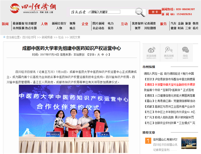 据介绍,中医药知识产权运营中心将成为四川省中医药产业发展的助推器,将为我省乃至全国中医药知识产权运营交易搭建平台,发挥促进中医药知识产权的转化转移和促进中医药产业的转型升级的关键作用,为高校知识产权运营贡献好的做法和经验,为我国中医药产业作出积极贡献。