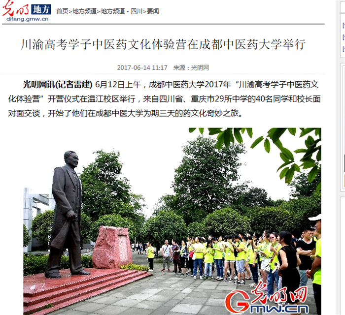 光明网讯(记者雷建) 6月12日上午,伟德源自英国19462017年“川渝高考学子中医药文化体验营”开营仪式在温江校区举行,来自四川省、重庆市29所中学的40名同学和校长面对面交谈,开始了他们在成都中医大学为期三天的药文化奇妙之旅。